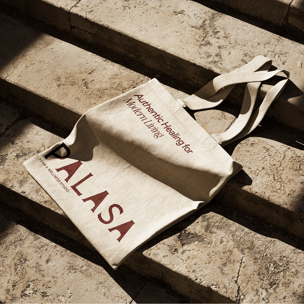 The wordmark “PALASA” uses a refined, elegant serif typeface chosen for its balance of strength and softness, echoing the dual nature of yoga practice: grounded and gracefull.